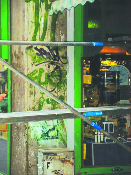Odstraňuje graffiti z rôznych povrchov, vrátane automobilov a dopravných značiek.
