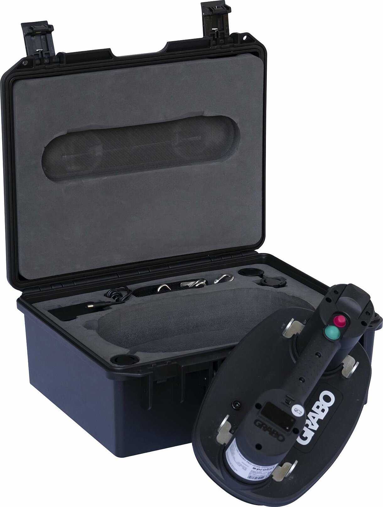 FXAH-120-GRABO-GREENLINE: Vákuové ručné pokladacie zariadenie, Nabíjačka (viacrozsahové napätie 110 V až 240 V, s vymeniteľnou zástrčkou EU, US, UK, CN) 1 x lítium-iónová batéria, náhradné gumené tesnenie a náhradný filter. Dodávané v ľahkom mäkkom puzdre.
